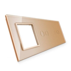 Poczwórny panel szklany złoty miejsce na gniazdo + trzy pojedyńcze miejsca na wkład (70111G-63) LIVOLO