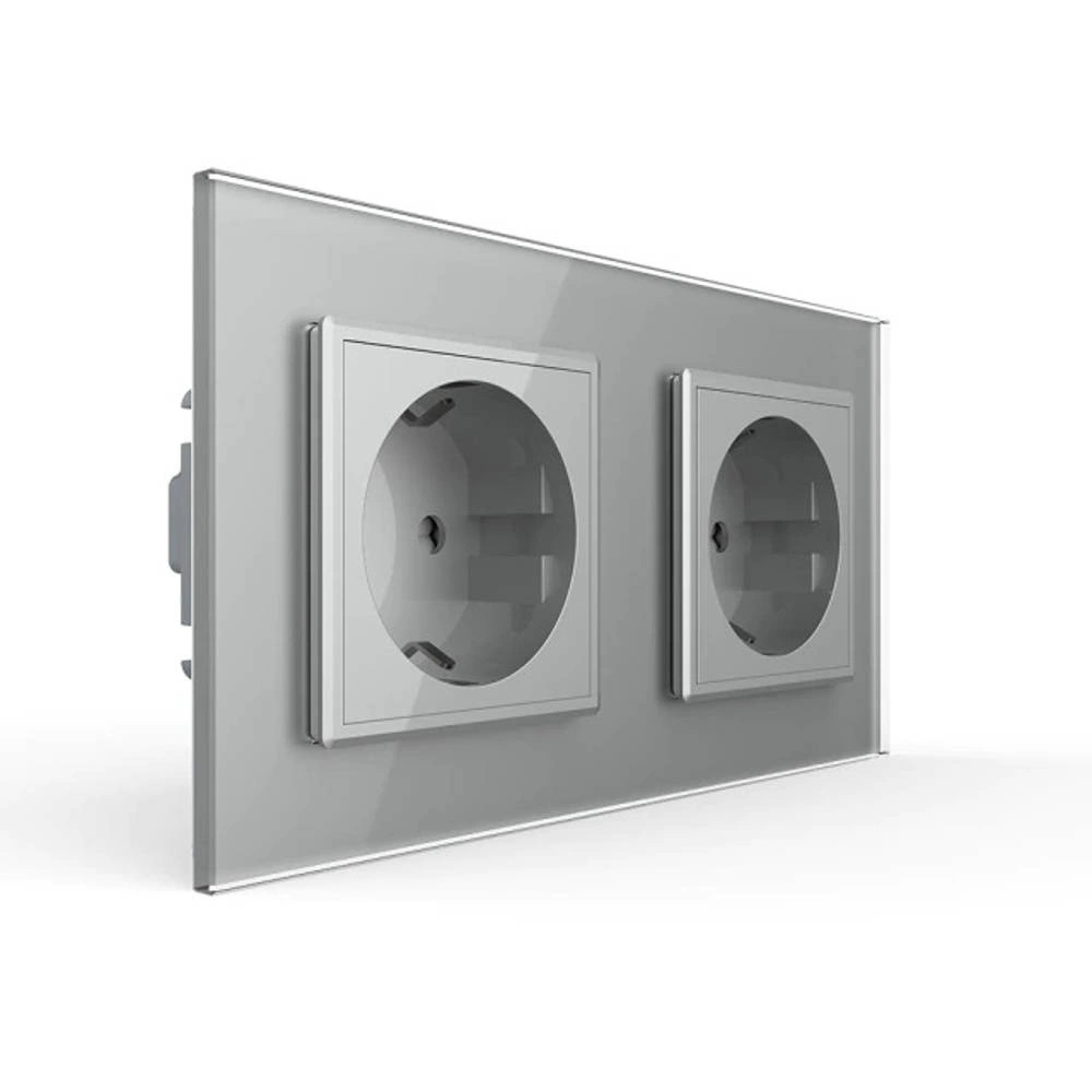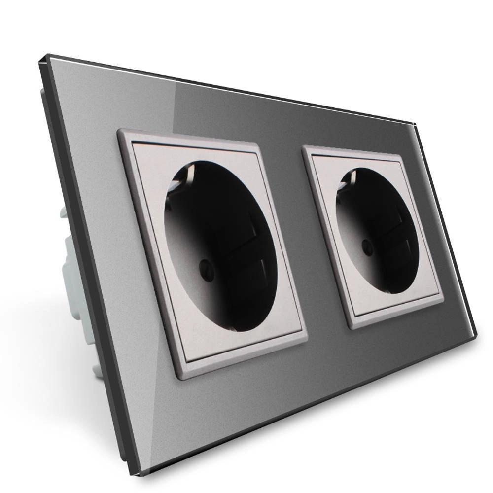 Gniazdo podwójne elektryczne 16A z srebrnym panelem szklanym (VL-W02G-64) LIVOLO