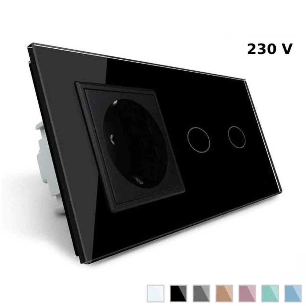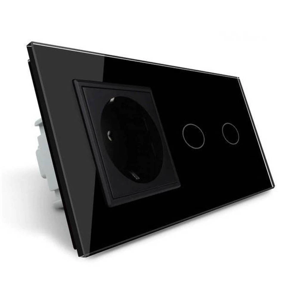 Gniazdo 230V 16A z włącznikiem dotykowym podwójnym z ramką szklaną Czarną (VL-C702EU-62) LIVOLO