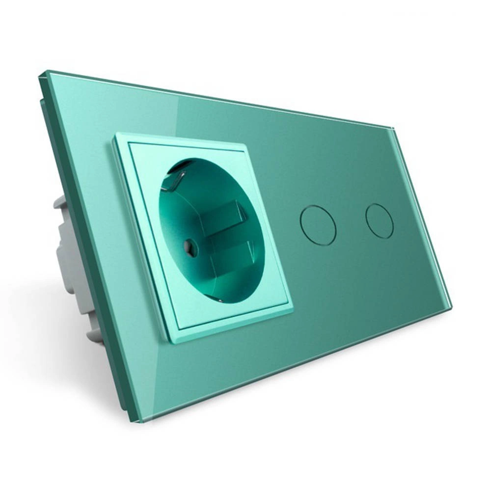 Gniazdo 230V 16A z włącznikiem dotykowym podwójnym z ramką szklaną Zieloną (VL-C702EU-68) LIVOLO