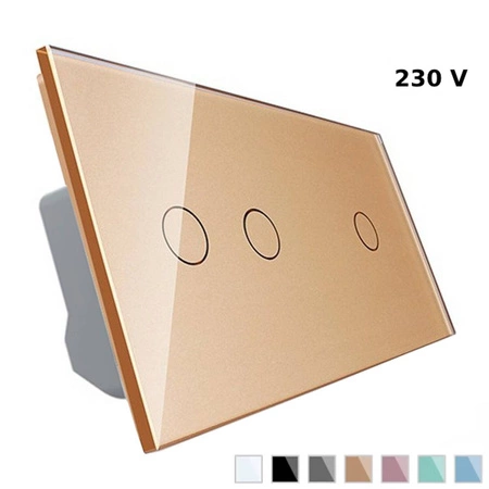 Podwójny dotykowy panel szklany w kolorze Złotym 2+1 (VL-C7012-63) LIVOLO