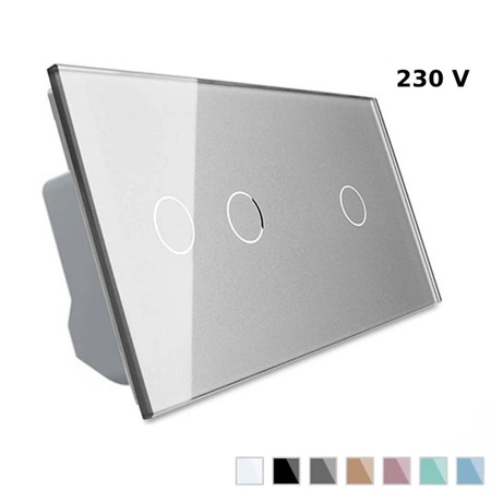 Podwójny dotykowy panel szklany w kolorze Srebrnym 2+1 (VL-C7012-64) LIVOLO