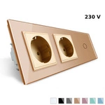 2 gniazda 230V 16A z włącznikiem dotykowym pojedynczym i panelem szklanym w kolorze złotym (VL-C701GG-63) LIVOLO