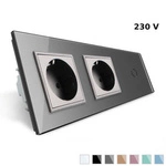 2 gniazda 230V 16A z włącznikiem dotykowym pojedynczym i panelem szklanym w kolorze srebrnym (VL-C701GG-64) LIVOLO