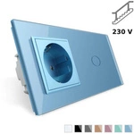 Gniazdo 230V 16A z włącznikiem dotykowym podwójnym z ramką szklaną Niebieską (VL-C702EU-69) LIVOLO