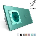 Gniazdo 230V 16A z włącznikiem dotykowym podwójnym z ramką szklaną Zieloną (VL-C702EU-68) LIVOLO